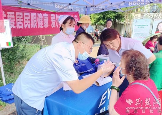 鄂州市婦幼保健院的醫(yī)護(hù)人員為在場居民免費提供婦科、兒科、產(chǎn)科三項義診服務(wù),中山口腔醫(yī)院的醫(yī)生們?yōu)榫用襁M(jìn)行血壓檢測和口腔檢查,愛爾眼科醫(yī)院為居民提供視力測試、眼底疾病、眼部干澀等相關(guān)檢查。