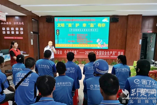 活動特別邀請市公安局交通管理局五大隊一中隊鳳凰分隊的趙錦雄為社區(qū)新業(yè)態(tài)新就業(yè)服務(wù)聯(lián)盟成員單位——“餓了么”長江天下站的“藍(lán)騎士”們上了一堂精彩又實用的交通安全教育課。