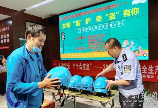 隨后趙警官和社區(qū)志愿者為“藍(lán)騎士”們贈送頭盔和愛心防暑飲品,把工會組織對新業(yè)態(tài)新就業(yè)群體的濃濃關(guān)愛送到小哥們心間,倡導(dǎo)大家在忙碌的送餐服務(wù)中一定要做到“文明騎行,安全配送”,爭當(dāng)文明交通的維護(hù)者、示范者、宣傳者和引導(dǎo)者,用實際行動為城市文明增光添彩。