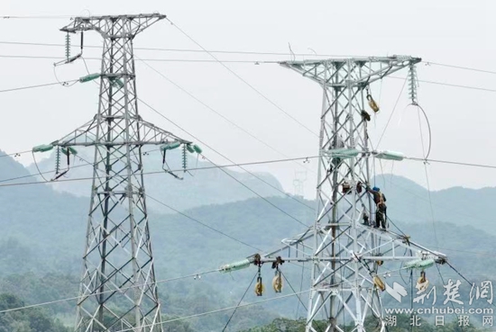 荊楚網(wǎng)(湖北日報網(wǎng))訊(通訊員 周燁任 曹浩)6月12日,在黃石陽新縣富陽公路和黃陽公路沿途110千伏宋竹線輸電線路改造現(xiàn)場,電力工人站在高高的鐵塔上,頭頂驕陽展放導(dǎo)線,全力迎戰(zhàn)夏季用電高峰。