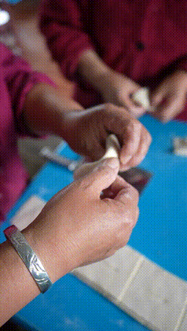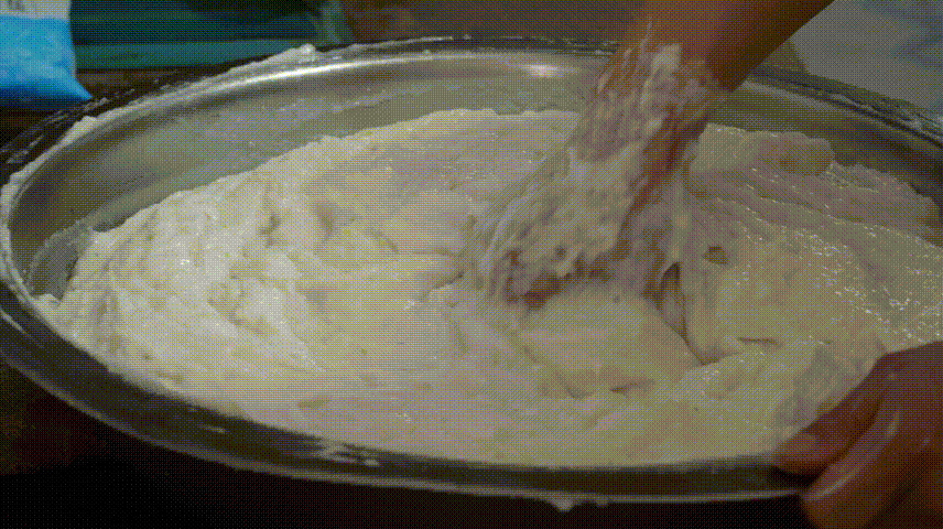 采艾草最鮮嫩的葉尖兒煮沸后過濾出青色汁液