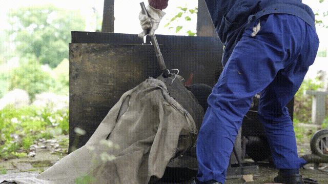 鼓風(fēng)機(jī)將煤球燒得通紅