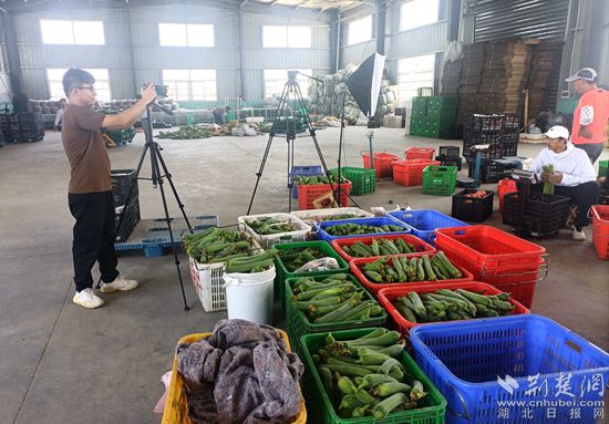 荊楚網(wǎng)(湖北日?qǐng)?bào)網(wǎng))訊(通訊員尹宏偉)6月27日,黃州區(qū)堵城鎮(zhèn)葉路洲余嶺村的湖北福耕生態(tài)農(nóng)業(yè)發(fā)展有限責(zé)任公司蔬菜分揀倉(cāng)庫(kù)里,公司負(fù)責(zé)人吳易翔正對(duì)著鏡頭,賣(mài)力地通過(guò)抖音直播帶貨。