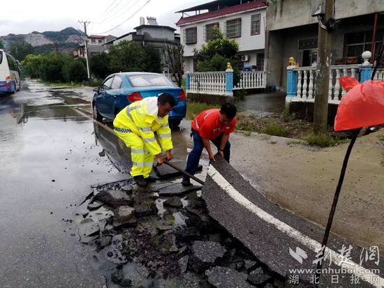 面對突發(fā)險情,咸安區(qū)公路管理局立即啟動應(yīng)急預(yù)案,全體養(yǎng)護人員冒雨上路搶通保暢。