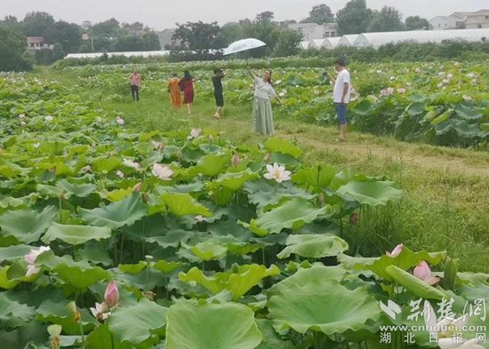 荊楚網(wǎng)(湖北日?qǐng)?bào)網(wǎng))訊(通訊員毛紅平)7月16日,天氣稍微轉(zhuǎn)涼,紅安縣城關(guān)鎮(zhèn)小豐山村四組的300畝連片“大寨田”里的荷花漸次綻放,粉荷碧葉亭亭玉立,美麗動(dòng)人。一群身著旗袍的游人打著油紙傘穿梭于層層疊疊的荷葉中,伴隨著搖曳生姿的荷花,或歌詠或朗誦或造型,儼然形成夏日里一道靚麗的風(fēng)景線。