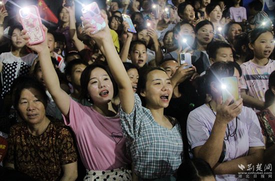 傍晚,華燈初上,匡河小學(xué)籃球場(chǎng)熱鬧非凡,球場(chǎng)周圍群眾揮舞著國(guó)旗,喜笑顏開,加油聲、喝彩聲一浪高過(guò)一浪。