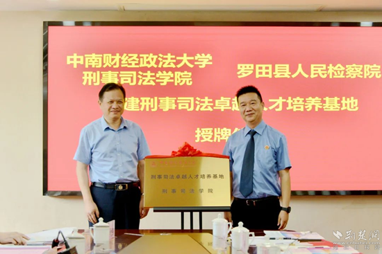 荊楚網(wǎng)(湖北日報網(wǎng))訊(通訊員王章?。?/strong> “預祝我們將基地建設成品牌,出課題、出成果、出人才?!?月19日,在一片熱烈的掌聲中,中南財經(jīng)政法大學刑事司法學院與羅田縣人民檢察院共建刑事司法卓越人才培養(yǎng)基地簽約揭牌儀式圓滿舉行。