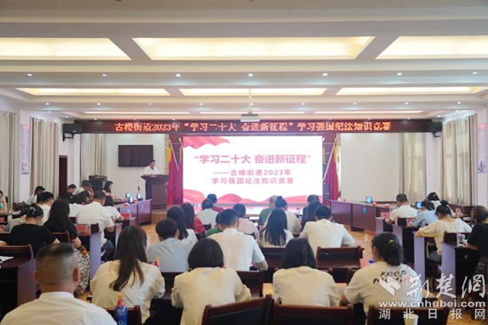 荊楚網(wǎng)(湖北日報網(wǎng))訊(通訊員丁元中)7月26日下午,鄂城區(qū)古樓街道舉辦“學習二十大,奮進新征程”學習強國紀法知識競賽。全街社區(qū)、股經(jīng)社、中心學校、市場監(jiān)管所、飛鵝衛(wèi)生服務中心、怡亭銘衛(wèi)生服務中心、街辦機關(guān)等20支代表隊60名選手參賽。
