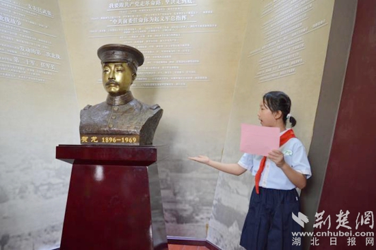 接著大家來到了賀龍軍部舊址研學(xué)點。賀龍軍部舊址紀(jì)念館是賀龍任軍長期間唯一一 座保存完整、有據(jù)可查的北伐戰(zhàn)爭時期的軍部舊址,是賀龍同志早期革命活動的重要實物見證,具有重要的歷史價值。在本站點共計10位“紅領(lǐng)巾”小小講解員為大家?guī)砹思t色歷史的回顧。