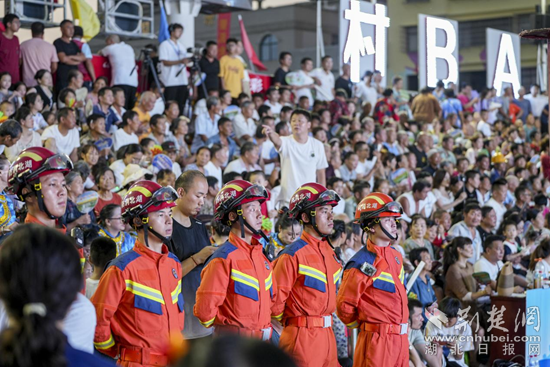 “沒想到來‘村BA’不僅能看到比賽,還能領(lǐng)到消防員送出的消防玩偶,這趟我可真是來對了!”前來觀看比賽的一名學(xué)生激動地說。本次活動,共發(fā)放“消防鈴鐺”玩偶100余個,消防安全宣傳單1000余份,現(xiàn)場受教育人數(shù)達(dá)4000余人,營造了濃厚的消防宣傳氛圍。
