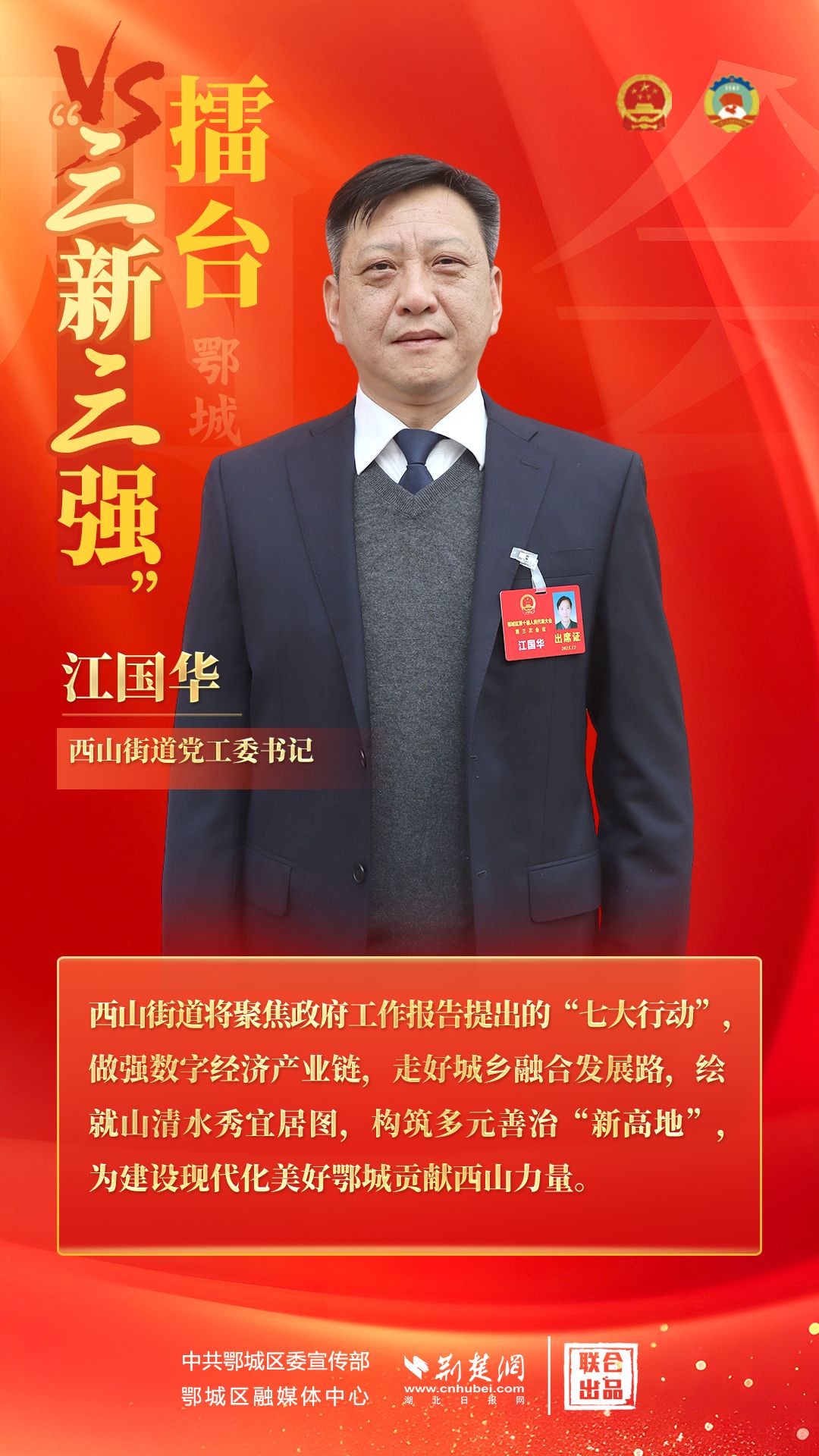 針對政府工作報告提出的“構(gòu)建新產(chǎn)業(yè)、打造新環(huán)境、推進新治理,推動強產(chǎn)爭先、強城爭優(yōu)、強村爭效”的要求,鄂城區(qū)10個鎮(zhèn)街負責(zé)人圍繞政府工作報告,結(jié)合各自工作實際,積極為鄂城區(qū)發(fā)展獻計獻策。