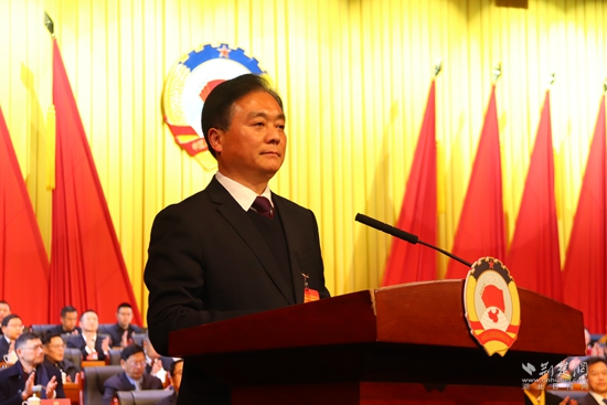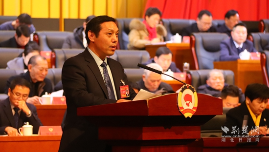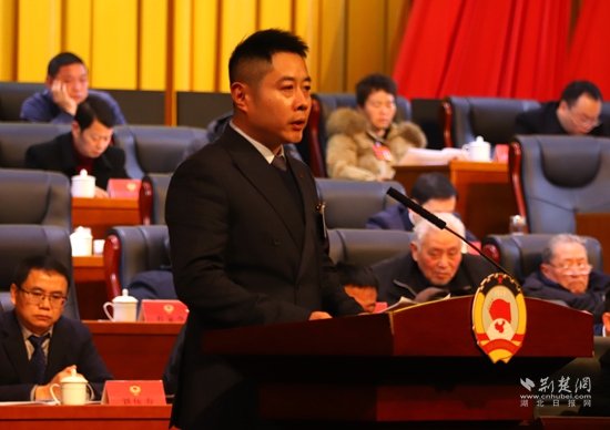 咸安區(qū)政協(xié)主席鎮(zhèn)權(quán)作工作報告。黃錚 攝