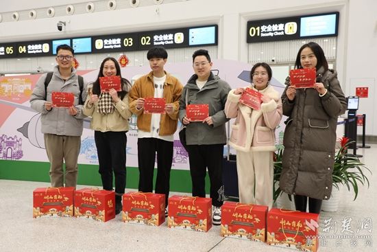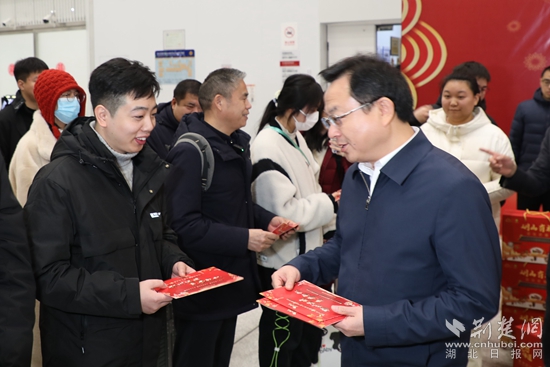 “感謝大家一年來(lái)為鄂州發(fā)展作出的貢獻(xiàn),這次通過(guò)免費(fèi)送建設(shè)者返鄉(xiāng)等多種舉措,希望能讓大家感受到鄂州這座城市的溫度?!痹跈C(jī)場(chǎng)航站樓一樓大廳,湖北省總工會(huì)領(lǐng)導(dǎo)及鄂州市領(lǐng)導(dǎo)向外來(lái)務(wù)工人員代表贈(zèng)送裝有鄂州特產(chǎn)的年貨禮包,并致以誠(chéng)摯美好的新春祝福。