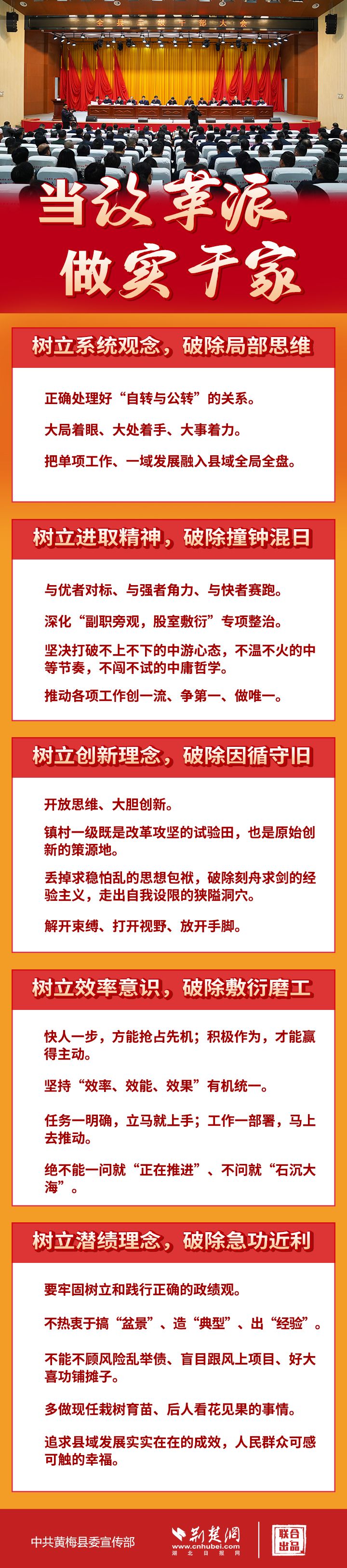 2月20日,黃梅縣召開三級干部大會。縣委書記劉欲曉提出,黃梅要前進(jìn),根本在干部。要引領(lǐng)全縣干部解放思想、甩開膀子、邁開步子、干出樣子,在堅持先立后破中保持站位前列姿態(tài)。