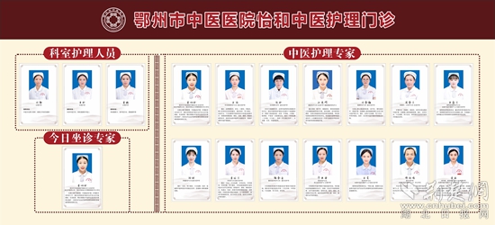 2022年5月12日,鄂州市中醫(yī)醫(yī)院開設怡和中醫(yī)護理門診,是全市首家集護理、科研、教學于一體具有中醫(yī)特色的護理門診,開展灸法、罐法、刮痧、穴位貼敷、放血、中藥熏藥、穴位注射等50余項中醫(yī)特色護理療法,為廣大人民群眾提供專業(yè)的“簡便驗廉”中醫(yī)特色護理療法,以及中醫(yī)膳食、生活起居、情志調攝、中醫(yī)養(yǎng)生指導。