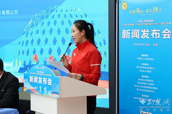 現(xiàn)場(chǎng),2000年悉尼奧運(yùn)會(huì)競(jìng)走奧運(yùn)冠軍王麗萍向鐵人三項(xiàng)運(yùn)動(dòng)愛好者們發(fā)出邀請(qǐng),今年四月相約湖北浠水。