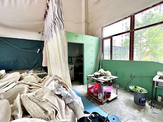 不僅如此,在大約50平方米的空間里,混亂擺放著十幾臺(tái)服裝加工機(jī)器,加工設(shè)備旁還放置著燃?xì)庠?、廚具等一應(yīng)俱全的做飯工具,且未進(jìn)行有效防火分隔。用來“保命”的室內(nèi)消防栓,也被用作置物臺(tái)放置各種雜物。