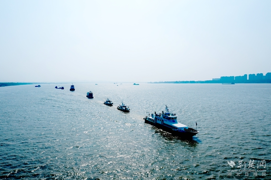 當(dāng)天上午9時(shí)許,各船艇嚴(yán)陣以待,海事旗迎風(fēng)招展,觀禮臺(tái)人頭攢動(dòng)……隨著總指揮一聲令下,指揮艇聲號長鳴,演習(xí)正式開始。