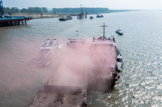 記者看到,演習(xí)由局交管中心對演習(xí)水域?qū)嵤┡R時(shí)交通管制、航道部門調(diào)整演習(xí)水域航標(biāo)開始,演習(xí)科目為先導(dǎo)索脫落打撈、船舶甲板起火、船舶溢油處置、故障船舶拖帶作業(yè)、人員落水應(yīng)急處置等多科目綜合性演習(xí),實(shí)景模擬了燕磯大橋后續(xù)施工作業(yè)可能遇到的各種水上突發(fā)事件。