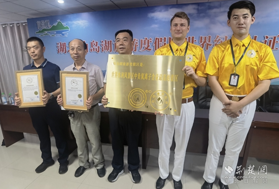 現(xiàn)場頒發(fā)“世界水利風(fēng)景區(qū)中負(fù)氧離子含量最高的景區(qū)”紀(jì)錄證書該鎮(zhèn)新添一項(xiàng)世界級(jí)榮譽(yù)