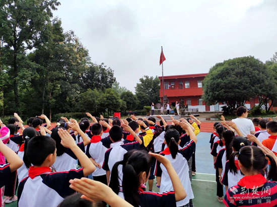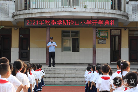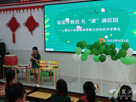 湖山小學(xué)教聯(lián)體章畈小學(xué)校區(qū),師生們齊聚學(xué)校報(bào)告廳,舉行“征途開(kāi)新啟,禮“律”滿(mǎn)校園”為主題的開(kāi)學(xué)典禮。