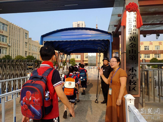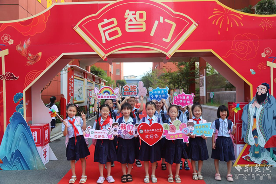 在黃金山第四小學(xué)教聯(lián)體本部校區(qū),孩子們正歡快地路過(guò)成長(zhǎng)門(mén)。他們臉上洋溢著對(duì)未來(lái)的憧憬,小小的身影充滿(mǎn)著希望。