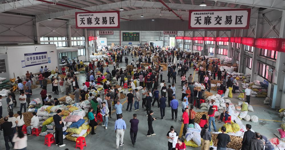 2023年10月15日,大別山道地藥材產(chǎn)業(yè)園交易市場在九資河鎮(zhèn)鳴鑼開市,當(dāng)日成交額突破2500萬元,吸引了2000多名本地藥農(nóng)進場售賣,400多名客商從陜西、云南、安徽等地慕名而來。