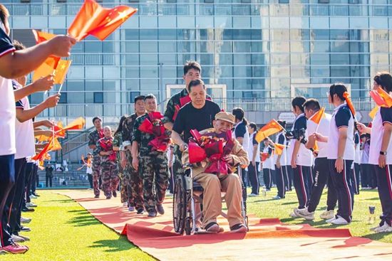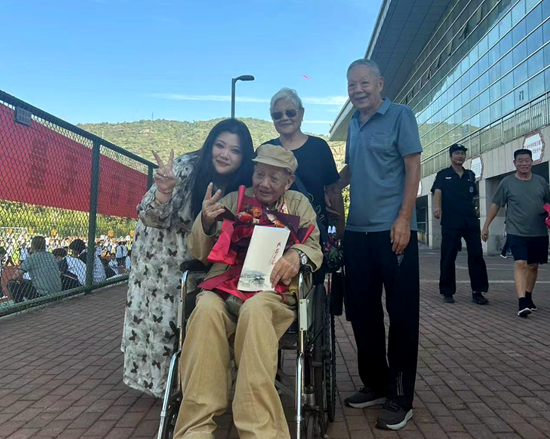 荊楚網(wǎng)(湖北日?qǐng)?bào)網(wǎng))訊(記者呂鑒蕾、通訊員黃旺宣、范晨熠、李俊)9月29日,湖北師范大學(xué)附屬中學(xué)(黃石一中)操場,當(dāng)98歲的老兵由家人推著輪椅,緩緩走上紅地毯時(shí),現(xiàn)場爆發(fā)出雷鳴般的掌聲。
