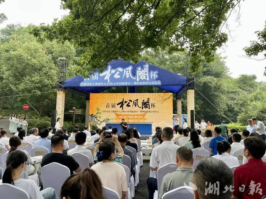 2024年5月19日,中國(guó)旅游日當(dāng)天,首屆“松風(fēng)閣”杯全國(guó)書(shū)法大賽頒獎(jiǎng)大會(huì)在鄂州市西山風(fēng)景區(qū)隆重舉辦,省、市領(lǐng)導(dǎo)為獲獎(jiǎng)代表頒獎(jiǎng)。與此同時(shí),現(xiàn)場(chǎng)邀請(qǐng)專家進(jìn)行了“跨越千年,對(duì)話黃庭堅(jiān)——黃庭堅(jiān)松風(fēng)閣書(shū)法的價(jià)值及對(duì)鄂州文化的塑造”對(duì)話。