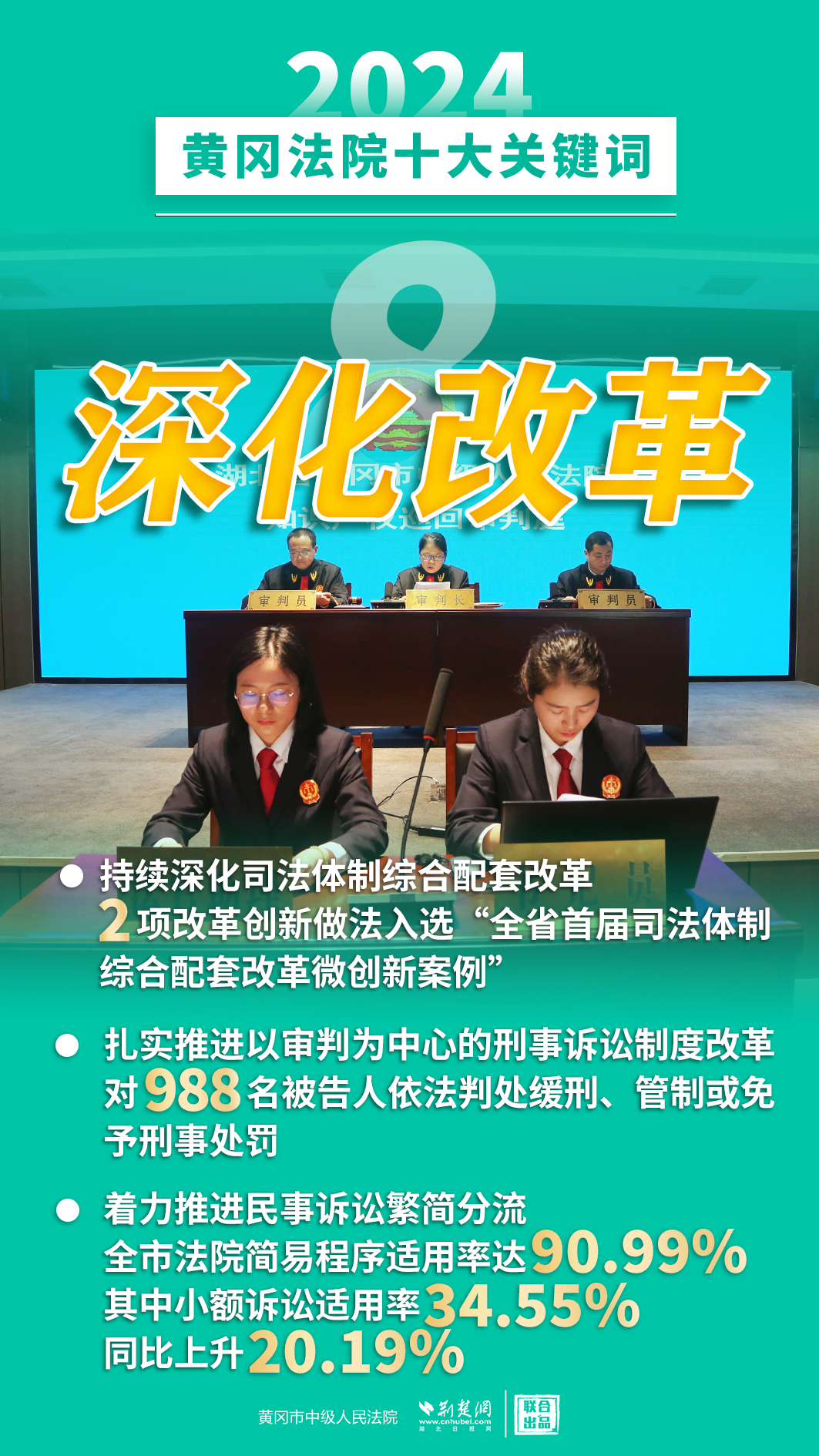 2024年,黃岡法院深入學(xué)習(xí)貫徹黨的二十屆三中全會精神,認(rèn)真落實黨中央決策部署和省委、市委工作要求,忠誠履職、擔(dān)當(dāng)作為,著力護(hù)航經(jīng)濟(jì)高質(zhì)量發(fā)展、助推社會高效能治理、守護(hù)群眾高品質(zhì)生活,各項工作取得新發(fā)展、實現(xiàn)新突破。