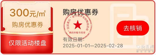 值得注意的是,此次專場(chǎng)活動(dòng)的“購房?jī)?yōu)惠券”僅限在參與本次專場(chǎng)“大優(yōu)惠”活動(dòng)的房地產(chǎn)項(xiàng)目房源中使用,不能同時(shí)參與“一口價(jià)”優(yōu)惠活動(dòng)。“購房?jī)?yōu)惠券”僅限在2025年1月1日至2月28日期間使用,逾期未使用則自動(dòng)失效。