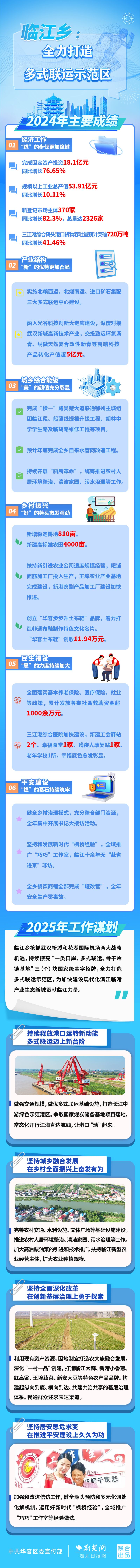 2024年,臨江鄉(xiāng)圍繞打造多式聯(lián)運(yùn)示范區(qū)發(fā)展目標(biāo),全年各項(xiàng)目標(biāo)任務(wù)取得新成效。2025年,臨江鄉(xiāng)如何全力打造多式聯(lián)運(yùn)示范區(qū)?荊楚網(wǎng)(湖北日報(bào)網(wǎng))帶您一圖速覽。