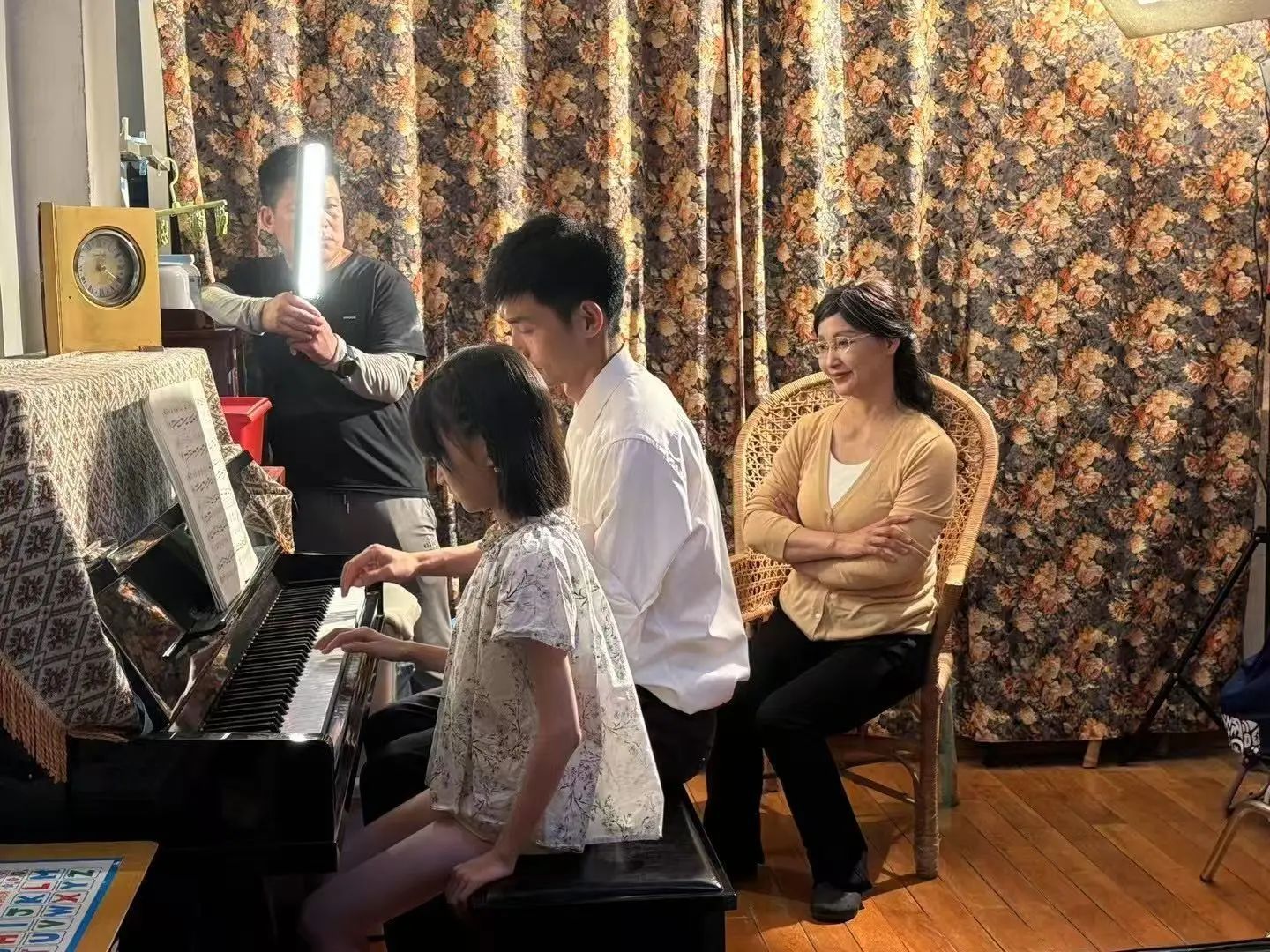 在拍攝過程中,導(dǎo)演巧妙運(yùn)用竹床、鋼琴等意象,展現(xiàn)時(shí)光流轉(zhuǎn)中的情感延續(xù)。童年時(shí),孩子在竹床上聽家家講故事;成年后,竹床雖已老舊,那份溫暖的回憶卻從未褪色。鋼琴從家家手繪的紙板鍵盤,到舞臺上的流光溢彩,展現(xiàn)著時(shí)代變遷與夢想延續(xù)。為了讓方言既能保留韻味,又能被非武漢觀眾理解,創(chuàng)作團(tuán)隊(duì)在念白、對話與歌詞的設(shè)計(jì)上花費(fèi)了大量心思,反復(fù)打磨每一句臺詞,最終找到了最佳平衡點(diǎn)。