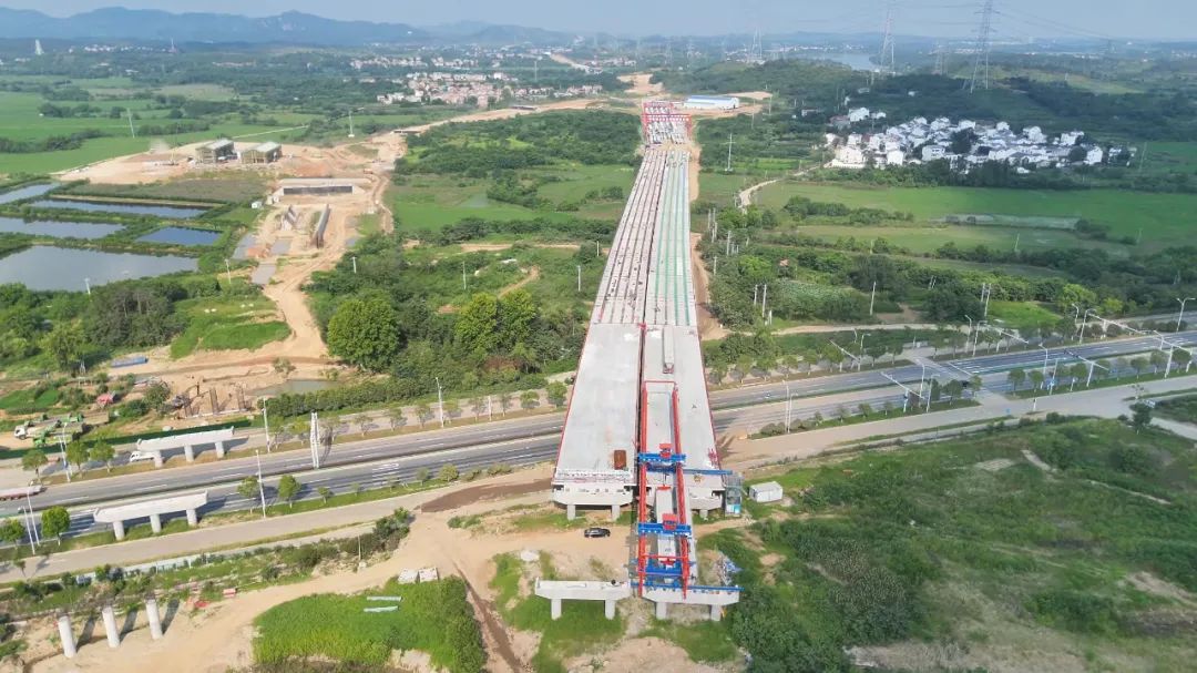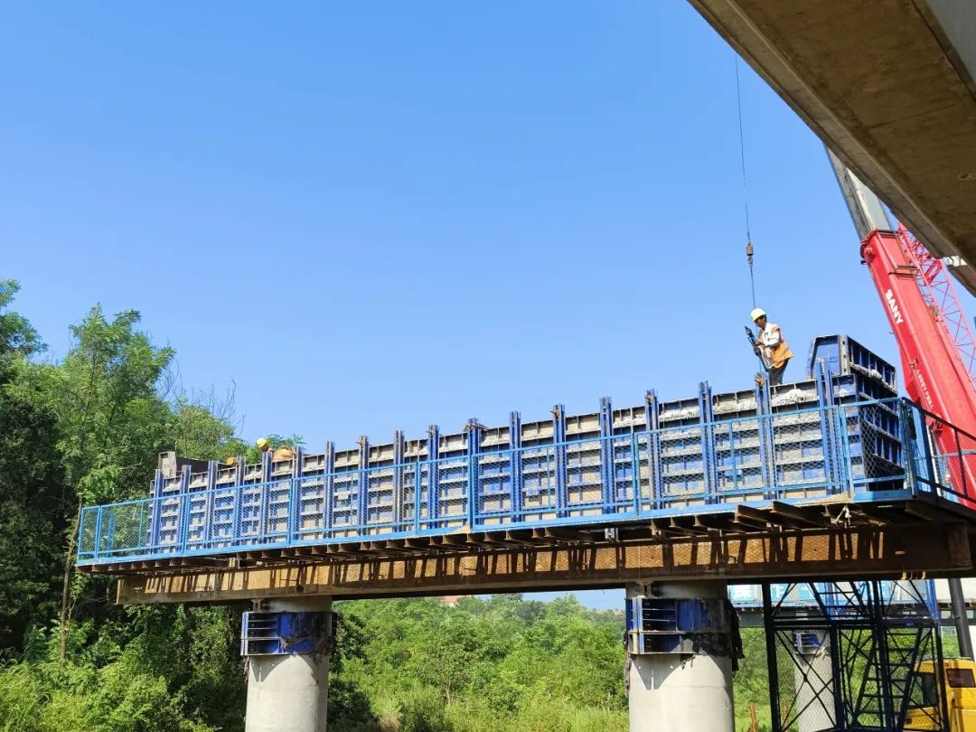 位于王家河街的鳳凰山大橋全長(zhǎng)840米,自5月20日啟動(dòng)架梁施工以來(lái),建設(shè)團(tuán)隊(duì)面對(duì)高溫、雨季等多重挑戰(zhàn),通過(guò)優(yōu)化施工方案、增加夜間作業(yè)班次,將工期壓縮了10天,提前完成140片箱梁架設(shè)任務(wù)。當(dāng)天,記者在施工現(xiàn)場(chǎng)看到,大橋左幅預(yù)制箱梁已全部架設(shè)完成,實(shí)現(xiàn)左幅貫通。