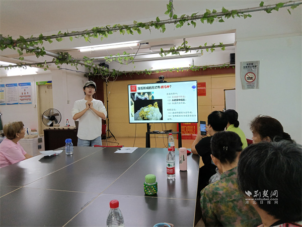 課堂上,科普講師手持多種天然寶石標本,向居民們娓娓道來寶石背后的地質傳奇?!斑@串水晶的每一顆珠子,都凝結著地球億萬年變遷的故事?!敝v師用形象生動的語言,為大家揭示巖漿如何孕育寶石、鉻元素怎樣為紅寶石賦予熾熱色澤、鉆石為何擁有極致硬度,以及珍珠形成的奇妙過程,將深奧的地質與化學知識轉化為通俗易懂的生活語言。