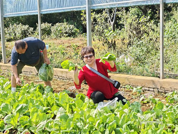 隨后的田園采摘環(huán)節(jié),居民們戴上手套、提起菜籃,親手采摘各類時令蔬菜,在勞動中體驗(yàn)收獲的喜悅。大家一邊彎腰采摘,一邊交流生活中的種植經(jīng)驗(yàn)和健康飲食心得,現(xiàn)場充滿歡聲笑語。