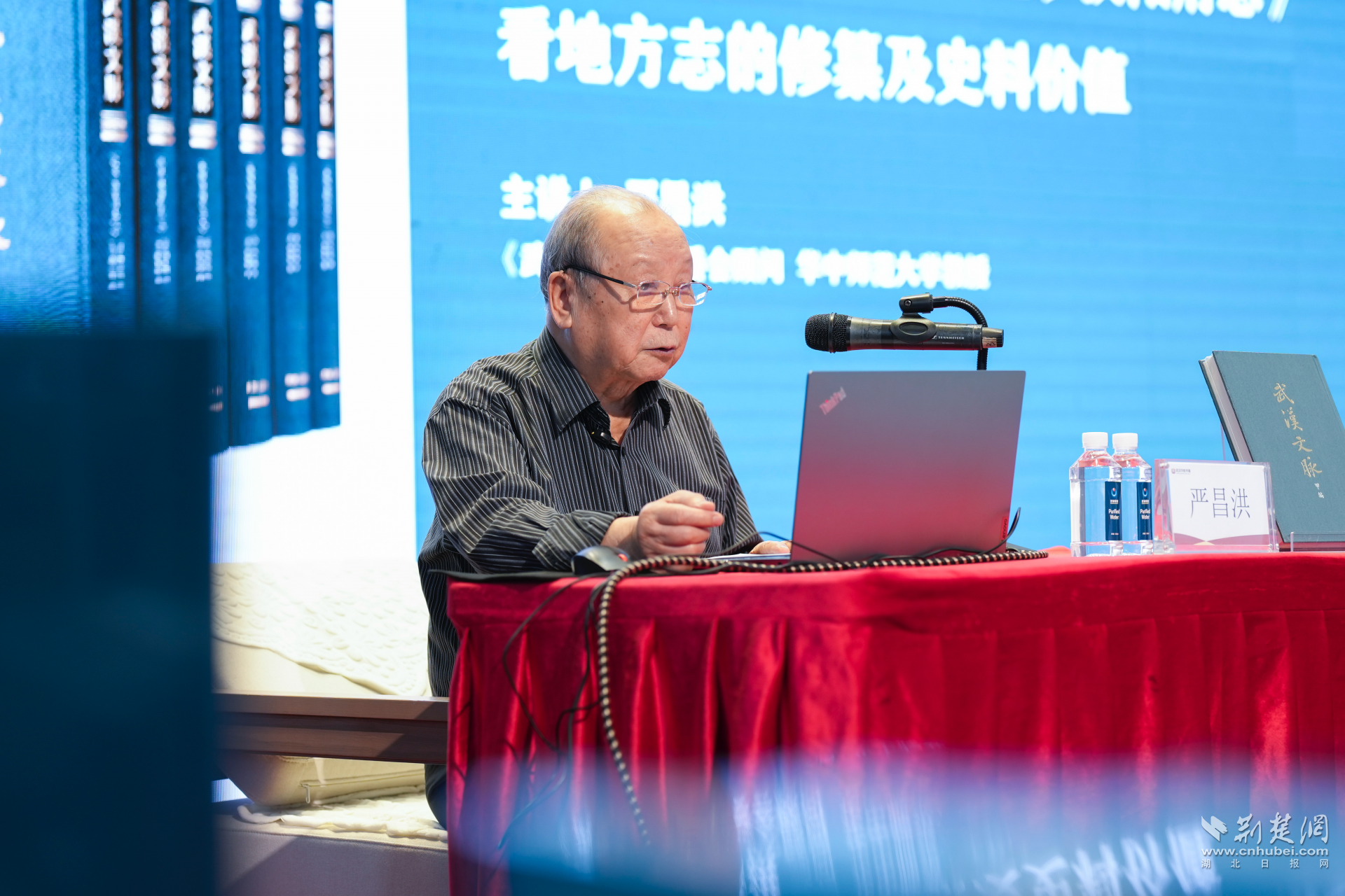 講座中,嚴昌洪教授圍繞《武漢文脈》“文獻編”與乾隆《漢陽府志》簡介、地方志的修纂、地方志的史料價值、整理出版舊志須注意的問題等四個方面展開闡述。他指出,《〔乾隆〕漢陽府志》詳細記載了清代乾隆年間漢陽府及其轄縣的歷史沿革與地理人文風貌,其首創(chuàng)的“天官卷”體例尤為獨特,系統(tǒng)地輯錄天文歷法內容,具有較高的史料稀缺性。