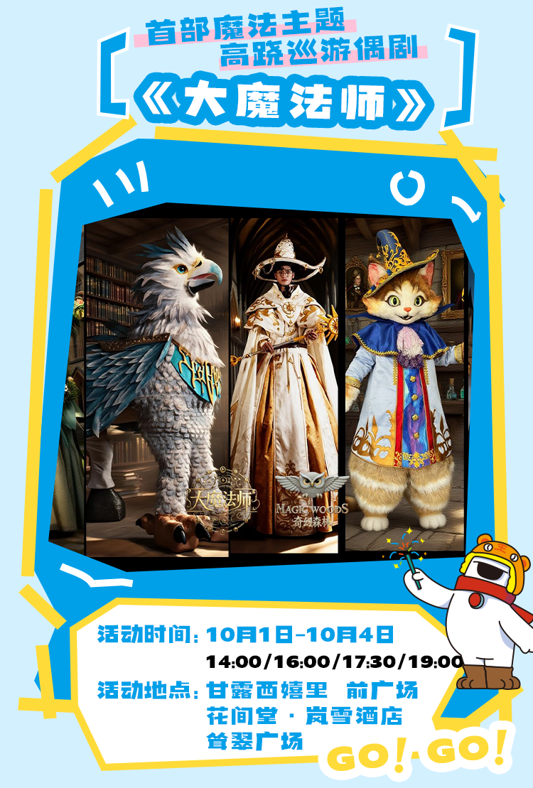 烏鎮(zhèn)戲劇節(jié)演藝團(tuán)隊(duì)將空降甘露山,這支魔術(shù)團(tuán)隊(duì)為游客帶來(lái)最新力作——中國(guó)首部魔法主題高蹺木偶劇《大魔法師》武漢首演,這也是該劇的全國(guó)首演,高2.4米白袍巫師哈瑞、精靈法師瑞秋、黑袍赫侖等IP角色震撼登場(chǎng),可一睹各類(lèi)經(jīng)典魔法咒語(yǔ)現(xiàn)場(chǎng)版,感受大魔法的奇幻世界。