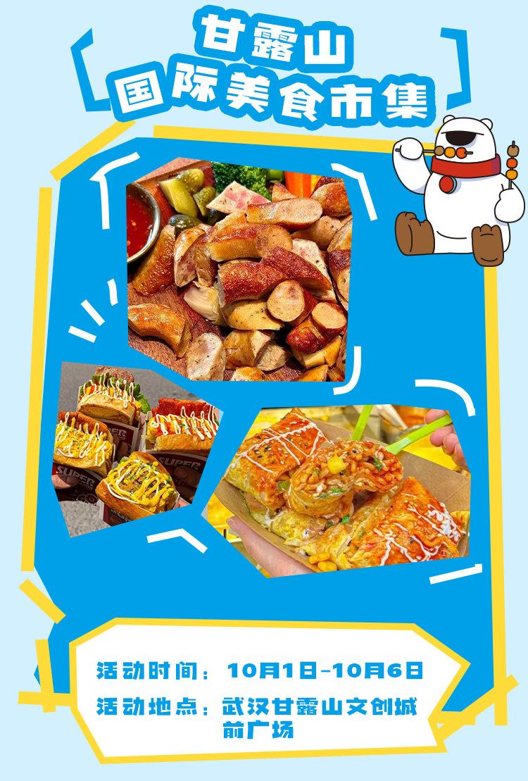 國(guó)慶期間,甘露山文創(chuàng)城即將開(kāi)啟一場(chǎng)舌尖上的環(huán)球旅行,特別引進(jìn)國(guó)際美食市集,亞洲風(fēng)情、歐洲慢調(diào)、美洲狂想、澳洲牧歌、環(huán)球大道,五大國(guó)際板塊,一市吃遍全球。