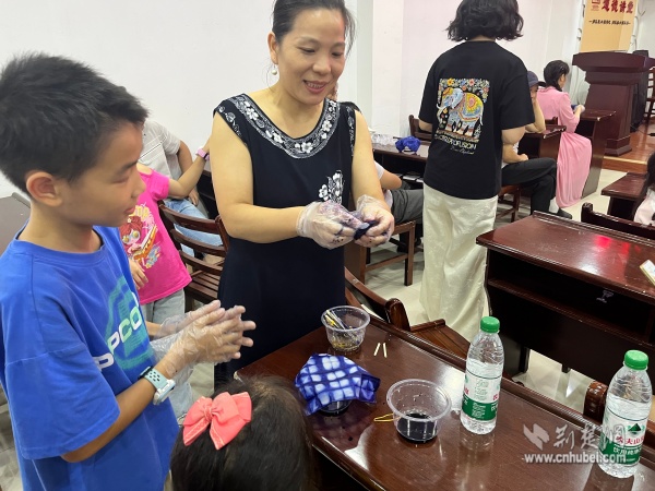 在動(dòng)手體驗(yàn)環(huán)節(jié),孩子們興致勃勃地嘗試各種扎結(jié)方法,家長們在旁細(xì)心協(xié)助。經(jīng)過精心捆扎與浸染,當(dāng)一塊塊布料被緩緩展開,呈現(xiàn)出獨(dú)一無二的藍(lán)白紋樣時(shí),現(xiàn)場響起陣陣驚嘆?;顒?dòng)不僅提升了孩子們的動(dòng)手能力與專注力,更讓他們深切感受到傳統(tǒng)技藝的魅力與勞動(dòng)的喜悅。