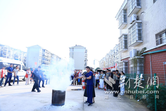 廣場一側(cè),先由湘口街道專職消防隊帶來一場沉浸式防災(zāi)減災(zāi)知識課。消防隊員就滅火器的性能、用途、使用方法、設(shè)備維護(hù)等基本知識進(jìn)行講解,對如何正確使用消防栓、鋪設(shè)水帶進(jìn)行了展示,著重講解了滅火器“一搖、二對、三撥、四壓”的操作技巧和注意事項,并指導(dǎo)社區(qū)居民進(jìn)行滅火器實操演練。“以前覺得滅火器操作很難,掌握技巧一點不難!”參加實操的居民李大爺說道。