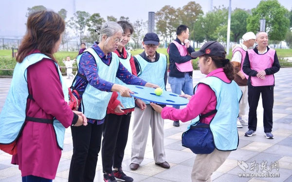 活動(dòng)現(xiàn)場(chǎng)設(shè)置了三個(gè)互動(dòng)游戲區(qū)域,“不倒森林”游戲中,老人們圍成一圈,默契配合轉(zhuǎn)動(dòng)長(zhǎng)桿;“四平八穩(wěn)”環(huán)節(jié),大家小心翼翼地操控游戲道具,努力保持小球平衡;“同舟共濟(jì)”時(shí),三人一組相擁站在墊子上協(xié)同挪動(dòng)。這些趣味拓展活動(dòng)不僅鍛煉了老人們的協(xié)調(diào)能力,更在歡聲笑語(yǔ)中增進(jìn)了鄰里情誼。