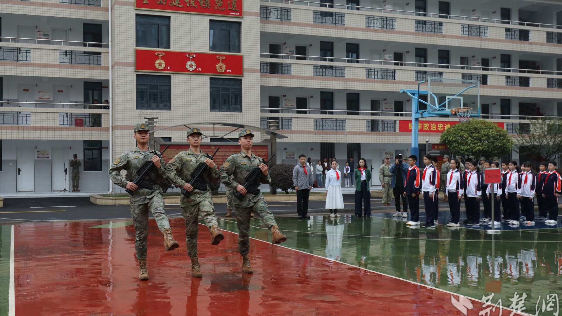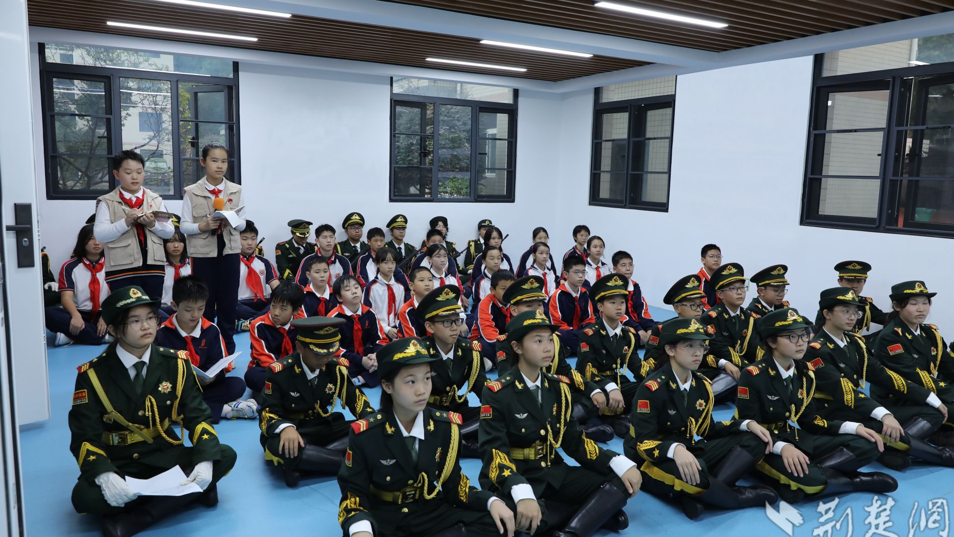 “我們是共產主義接班人,繼承革命先輩的光榮傳統(tǒng)......”伴隨著嘹亮的《中國少年先鋒隊隊歌》在軍營里響起,在武漢市優(yōu)秀少先隊輔導員張雨萱老師的帶領下,全體少先隊員舉起右拳,莊嚴重溫入隊誓詞。稚嫩卻堅定的聲音,不僅是對信仰的承諾,更是新時代好少年“聽黨話、跟黨走”的決心。
