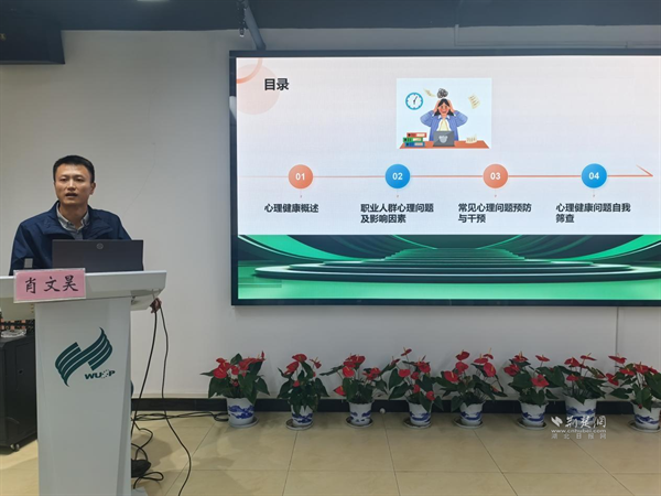 授課現(xiàn)場,醫(yī)院副主任醫(yī)師肖文昊圍繞四大核心板塊展開講解。在“心理健康概述”部分,他清晰界定心理健康的定義與標(biāo)準(zhǔn),重點(diǎn)剖析壓力管理、抗挫能力、情緒調(diào)節(jié)等關(guān)鍵要素,讓員工直觀理解心理健康對工作效率與生活質(zhì)量的影響;針對職業(yè)人群常見的職業(yè)緊張、倦怠、焦慮、抑郁等問題,他深入分析“心理支持缺失”“不良組織文化”“成長機(jī)會(huì)不足”等誘因,助力員工精準(zhǔn)識(shí)別自身潛在心理困擾。
