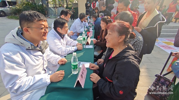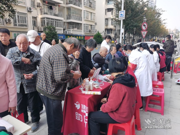 黃鶴書房外,由社區(qū)聯(lián)合武漢大學(xué)人民醫(yī)院共同舉辦的“秋音慰老,樂動桑榆”主題活動別具特色,融合健康義診、傳統(tǒng)美食、趣味游藝于一體。