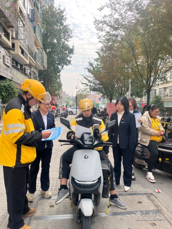 街道便民服務(wù)中心工作人員為騎手講解醫(yī)保政策。 通訊員供圖