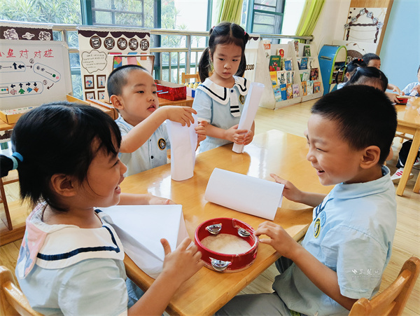 活動(dòng)采用沉浸式體驗(yàn)、高互動(dòng)參與形式。“薄薄一張紙,卷成圓筒后為啥能扛住比自己重好幾倍的東西?”幼兒園老師先播放趣味動(dòng)畫片勾起孩子好奇心,再拿起卷紙芯、快遞紙筒等生活常見物品,用淺顯的“兒童語言”拆解圓柱結(jié)構(gòu)的秘密,把抽象的力學(xué)原理講得直觀易懂,幫孩子們建立對(duì)科學(xué)的初步認(rèn)知。
