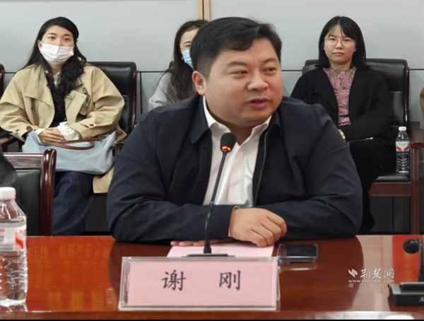 武漢鐵路職業(yè)技術(shù)學(xué)院黨委學(xué)工部部長謝剛介紹來訪團(tuán)隊(duì)情況。 通訊員供圖