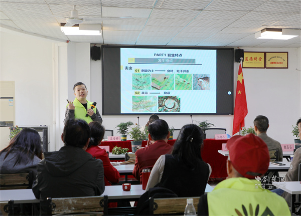 武漢市園林科學研究院工程師裴張新帶來秋冬季病蟲害防治小課堂。 通訊員供圖