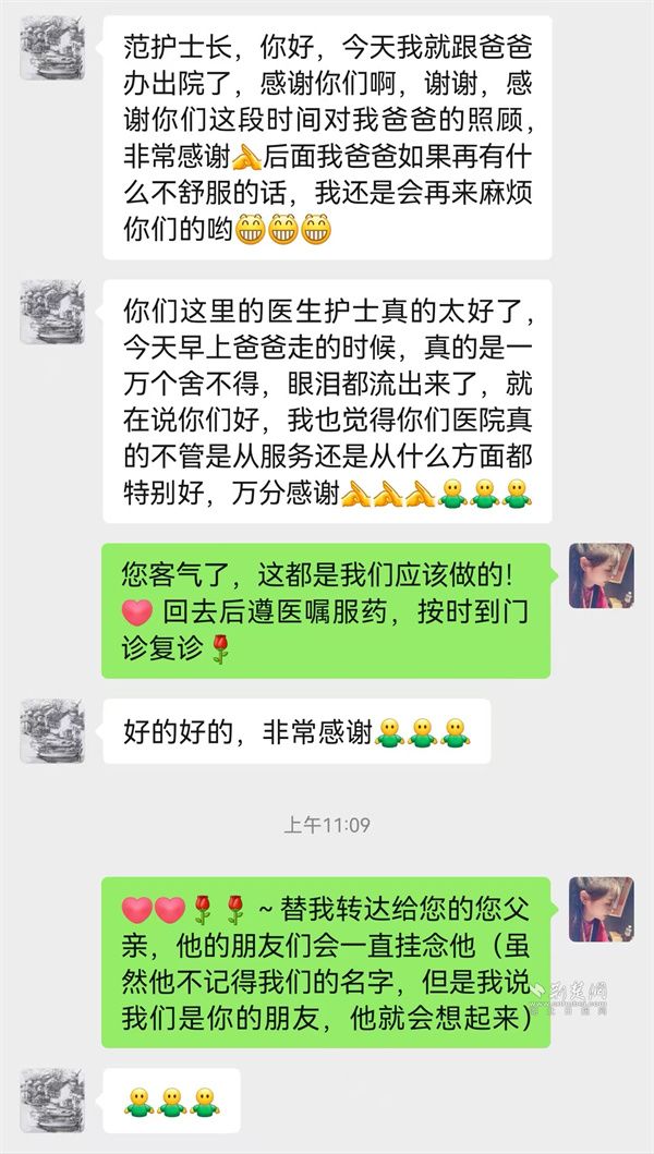 這份細(xì)致關(guān)懷,也深深印在患者和家屬心里?;颊卟痰鲈呵?,女兒特意給副護(hù)士長(zhǎng)范美玲發(fā)來(lái)微信:“你們這里的醫(yī)生護(hù)士真是太好了,爸爸在這住得比家里還舒心,你們比親人還細(xì)心。今天早上離開(kāi)的時(shí)候,他一萬(wàn)個(gè)舍不得,反復(fù)念叨著不想走?!?/p>